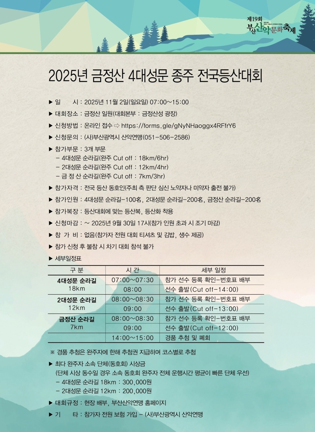 - 금정산 순라길 코스 : 모집 인원 200명 신청 완료 조기 마감